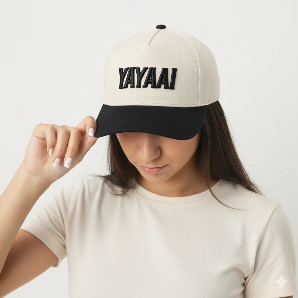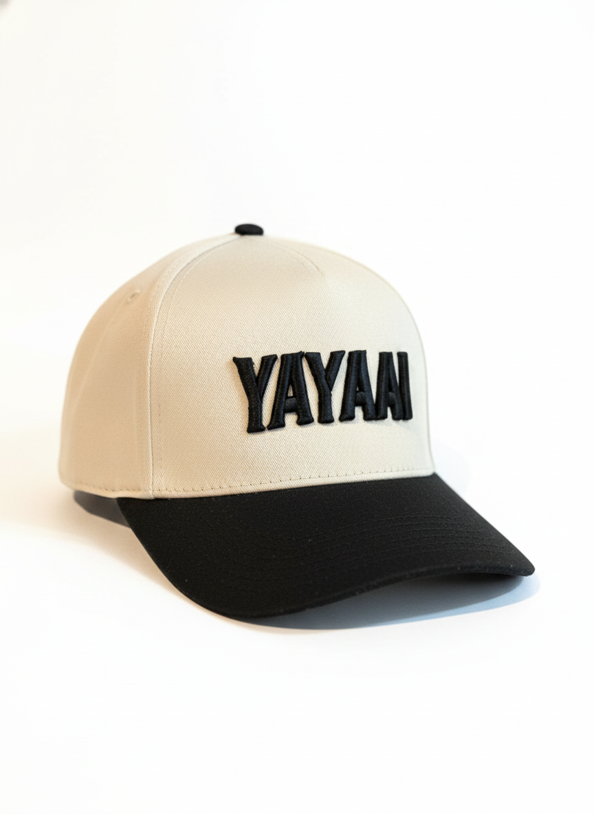 Eleva tu estilo con la gorra YAYAAI, diseñada para quienes buscan un look moderno, limpio y con carácter. Su combinación bicolor en tono beige con visera negra y bordado 3D en alto relieve le da un acabado premium que destaca en cualquier ocasión.